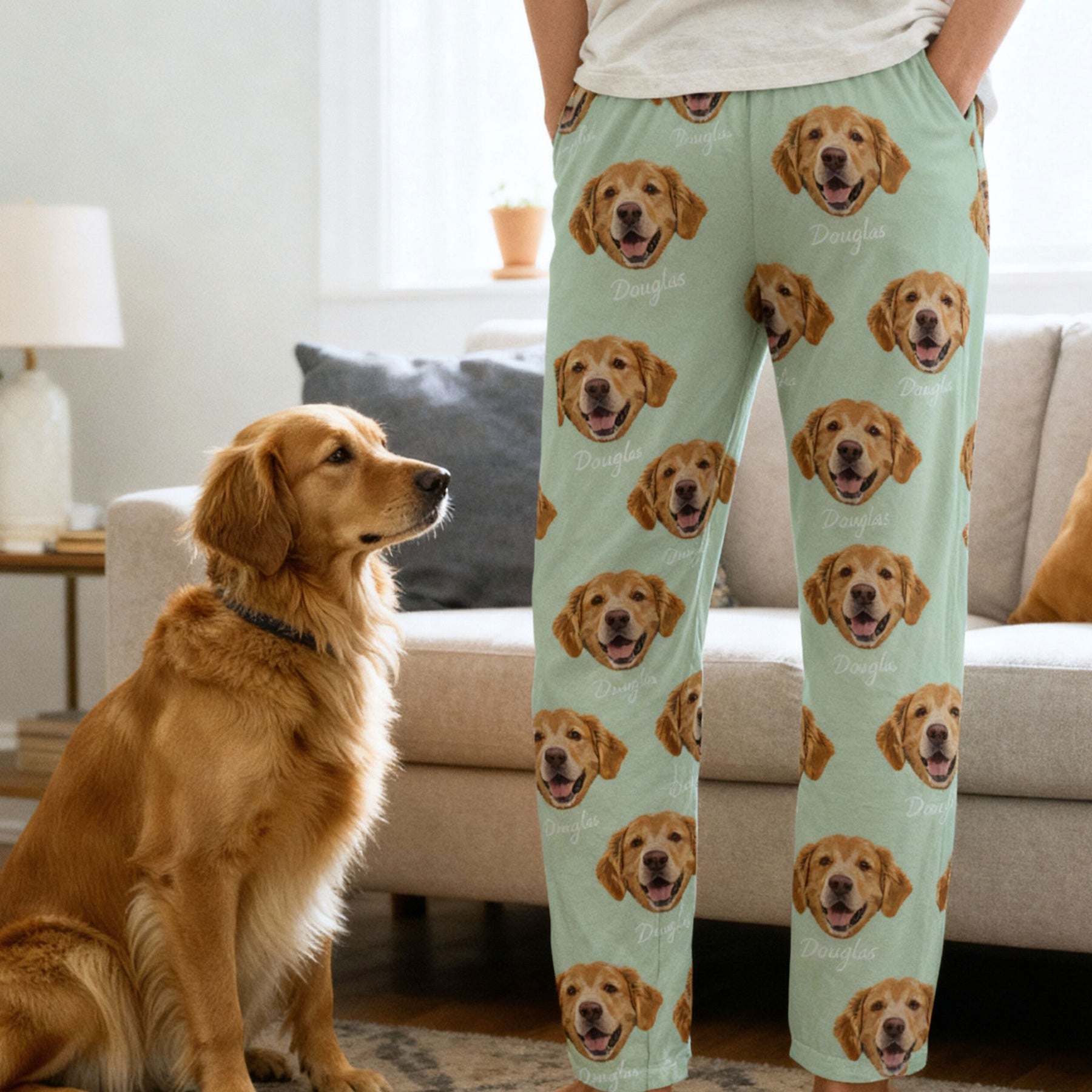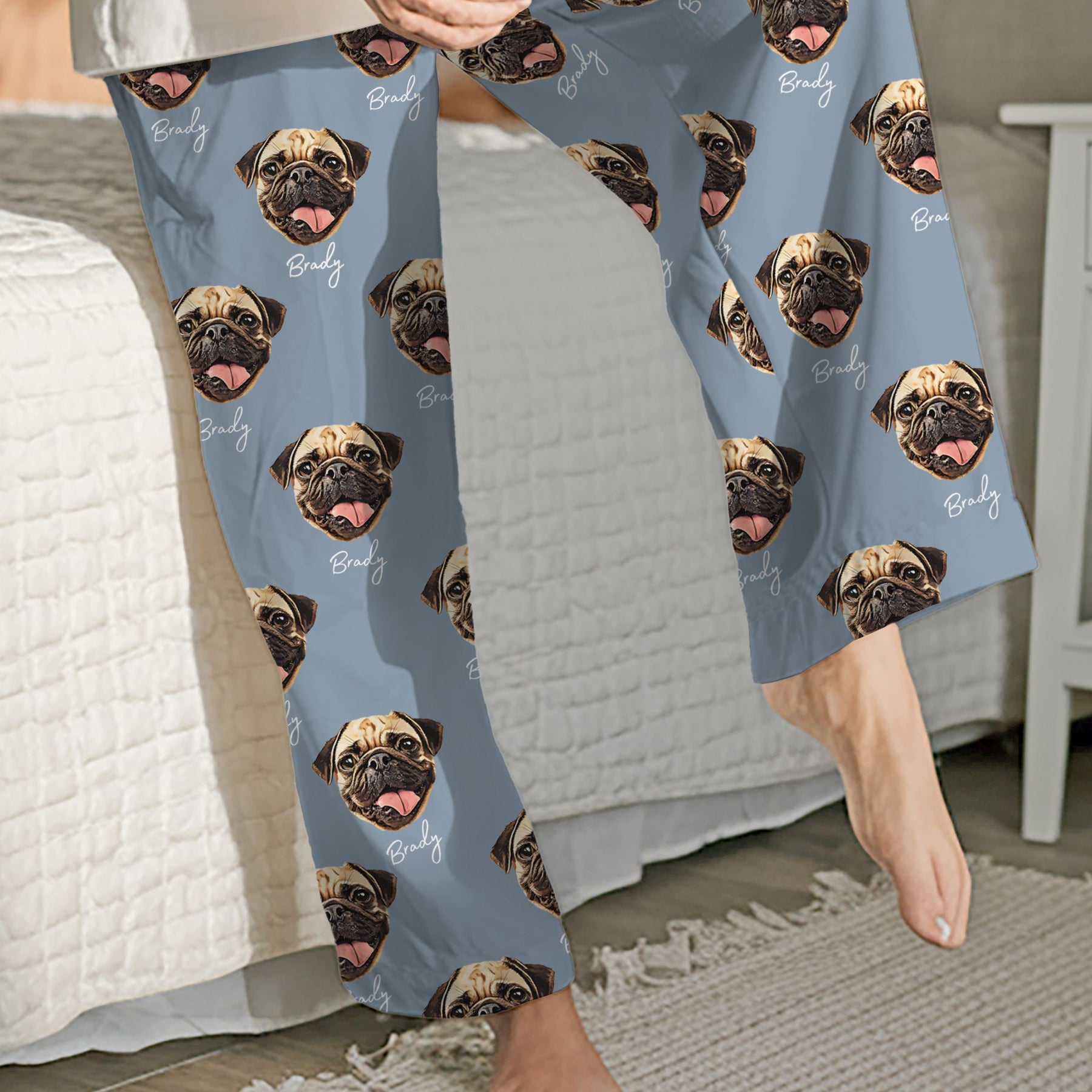 Celebrate the bond between you and your pet with this one-of-a-kind, modern pet pajamas that not only pay homage to your pet but seamlessly match any outfit. This pet pajama pant featuring your best friend will effortlessly match any aesthetic and most definitely a conversation starter. This tastefully designed cat pajama that includes your PET NAME can be purchased for you, or an ideal gift for dog lovers, pet sympathy, or remembrance gift! Comes in a variety of sizes and different colors to fit any style. Your pet is designed on 100% brushed polyester to ensure ultimate comfort and style to everyday lounging. PJ's are ultra-soft to the touch, it'll feel like you're touching a cloud.