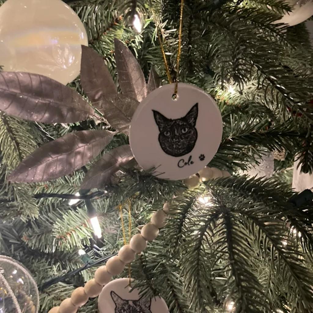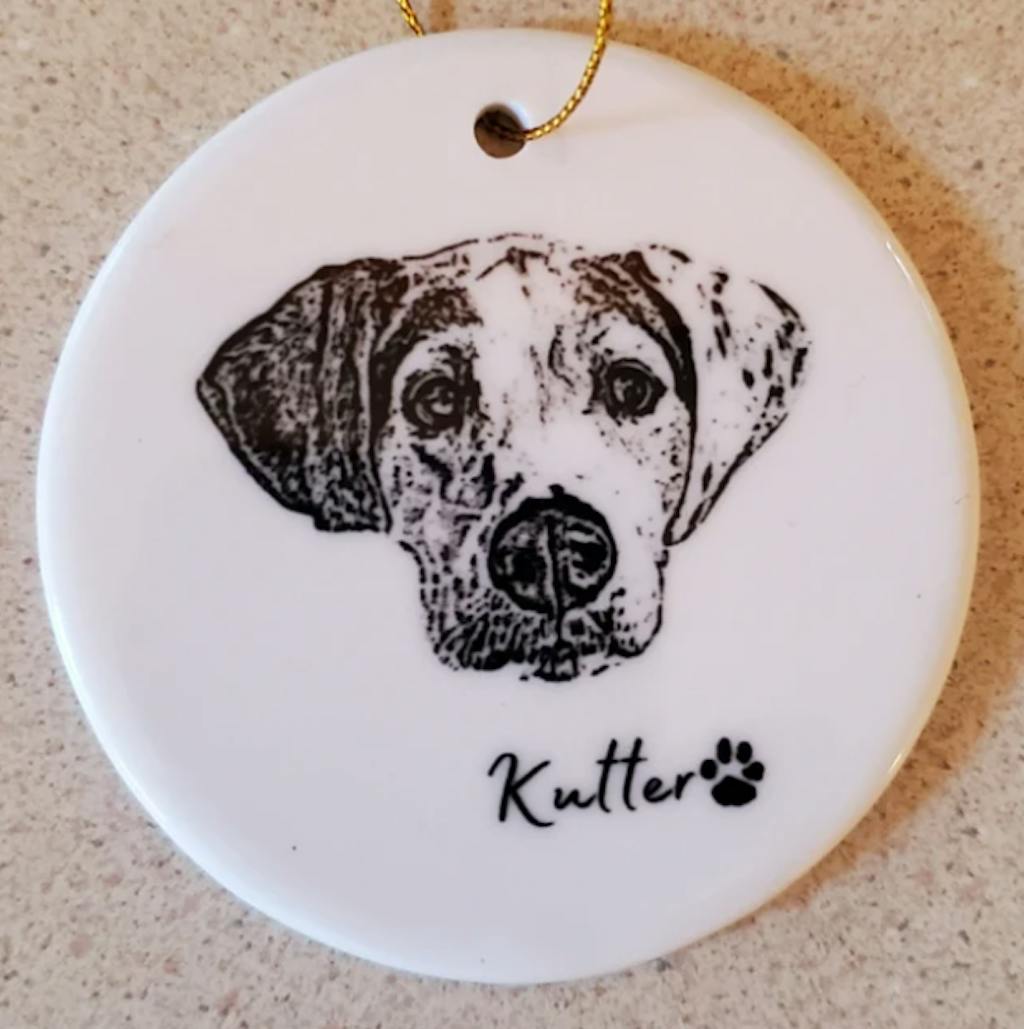 Celebrate the holidays and your pet with this unique, modern custom ornament. Our solidly constructed ornaments are made from high-quality porcelain to ensure use year after year. Our one of a kind design is digitally crafted and then printed on the ornament based on your pet's photo submission and includes your PET NAME can be purchased for you, or an ideal gift for dog or cat lovers, pet memorial gifts, or gifts for dog owners and more!