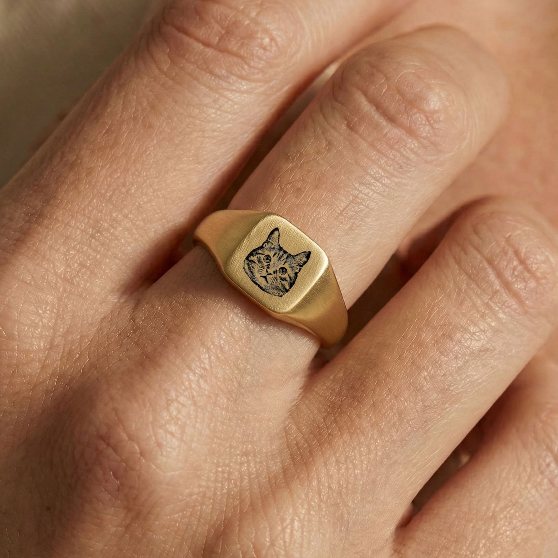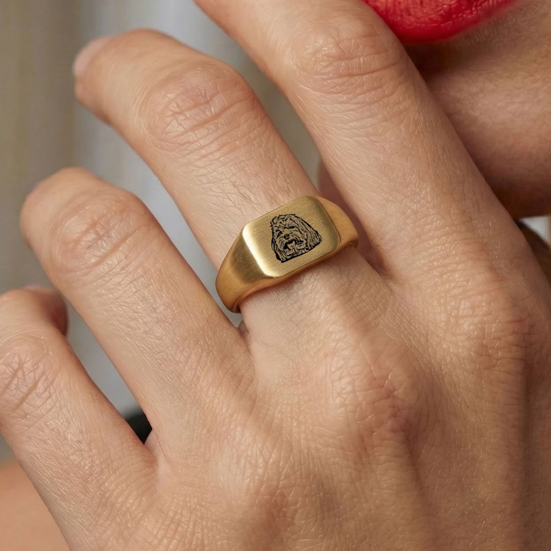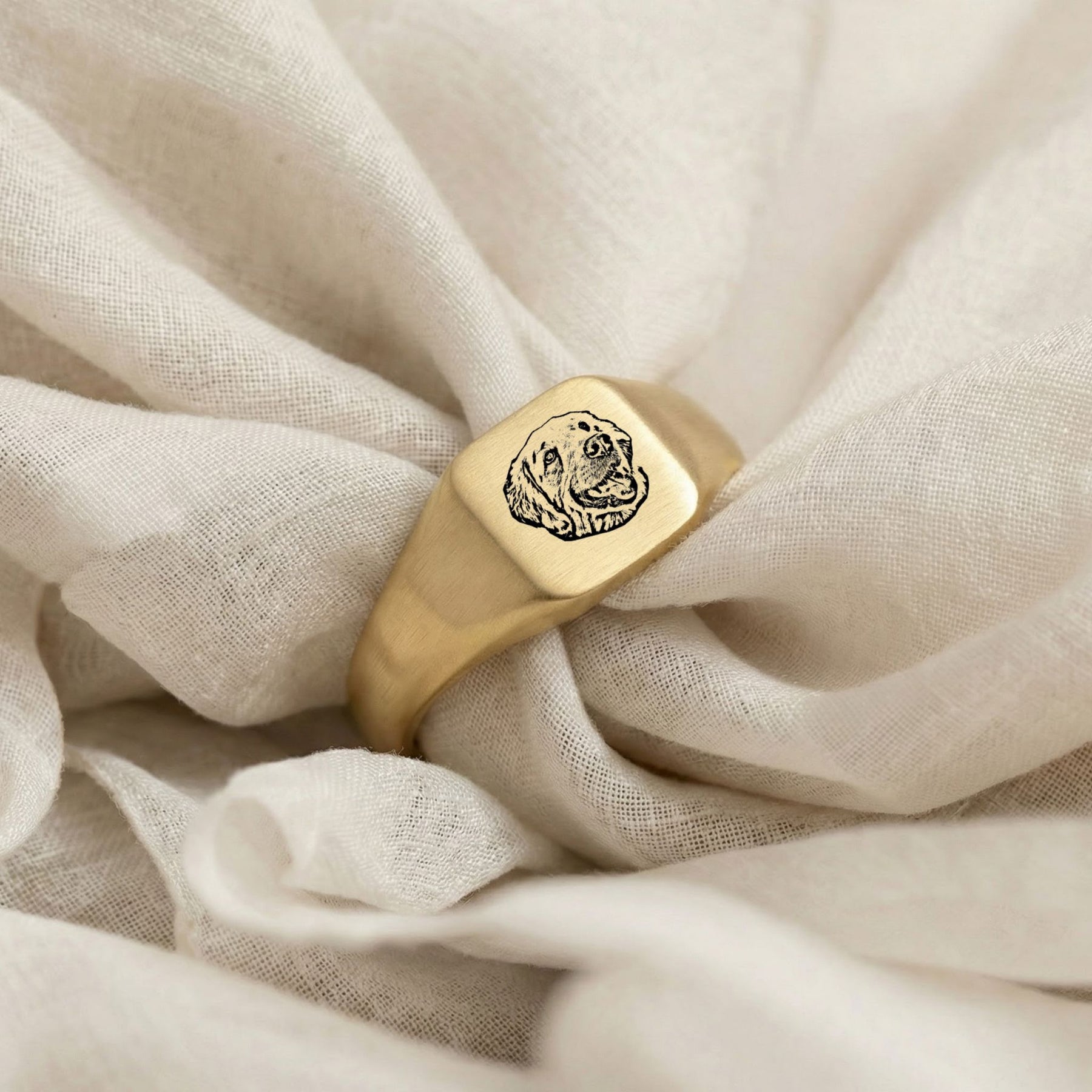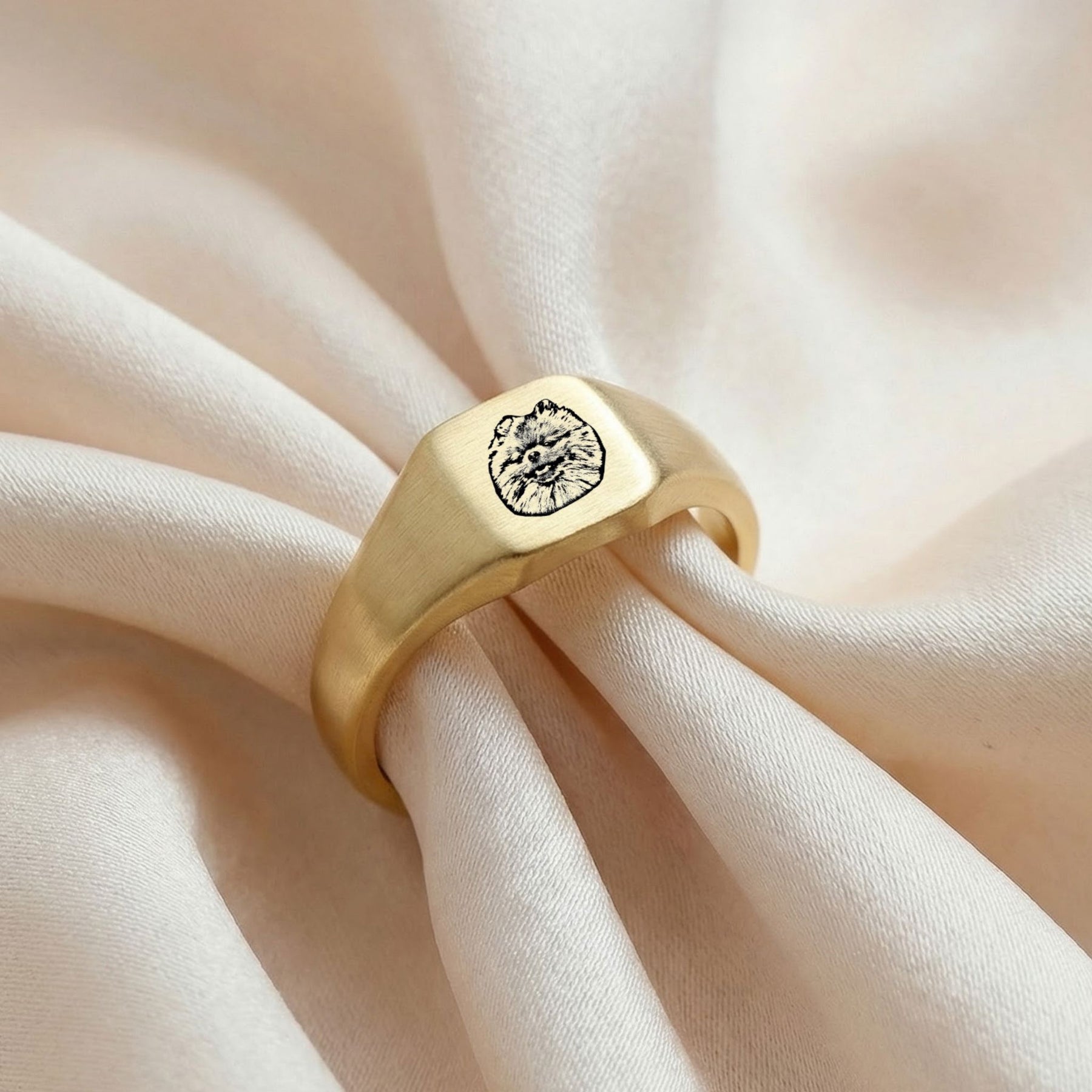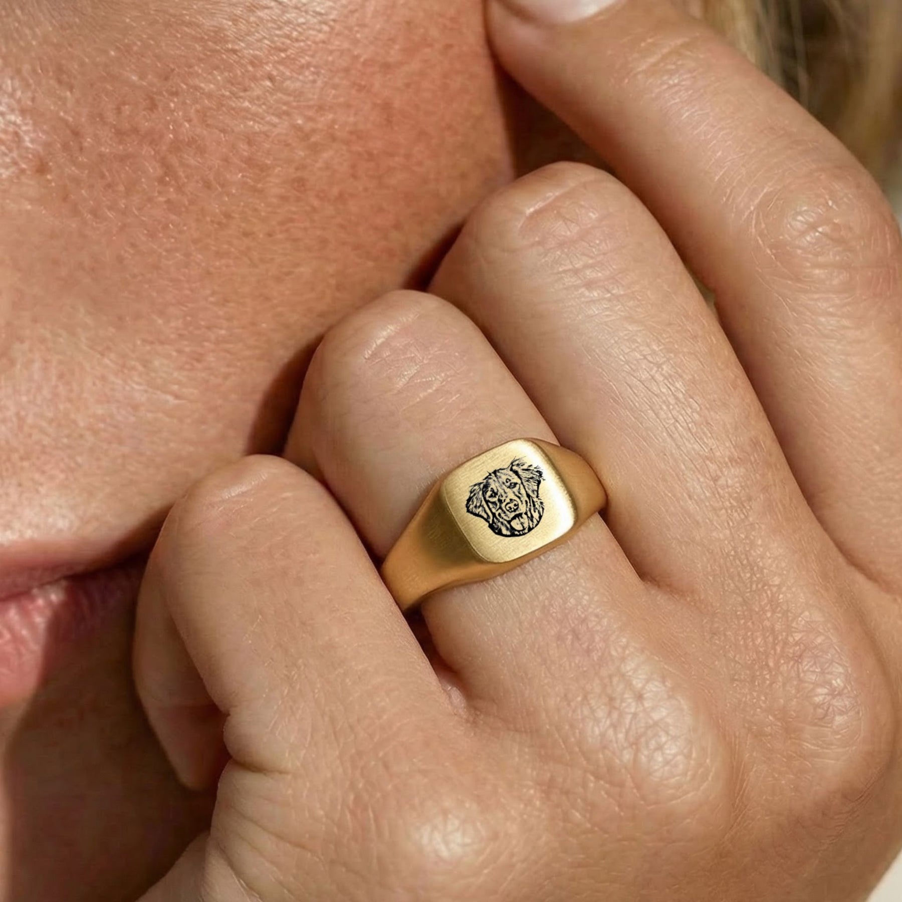 Custom Pet Square Signet Engraved Ring - Pet Face