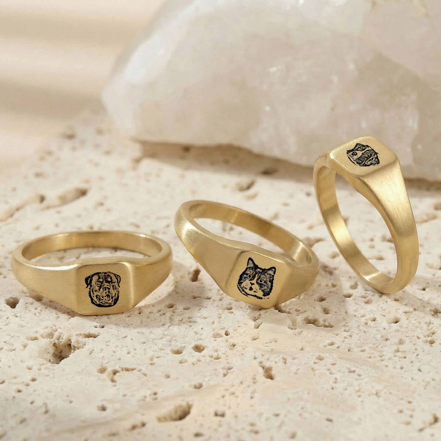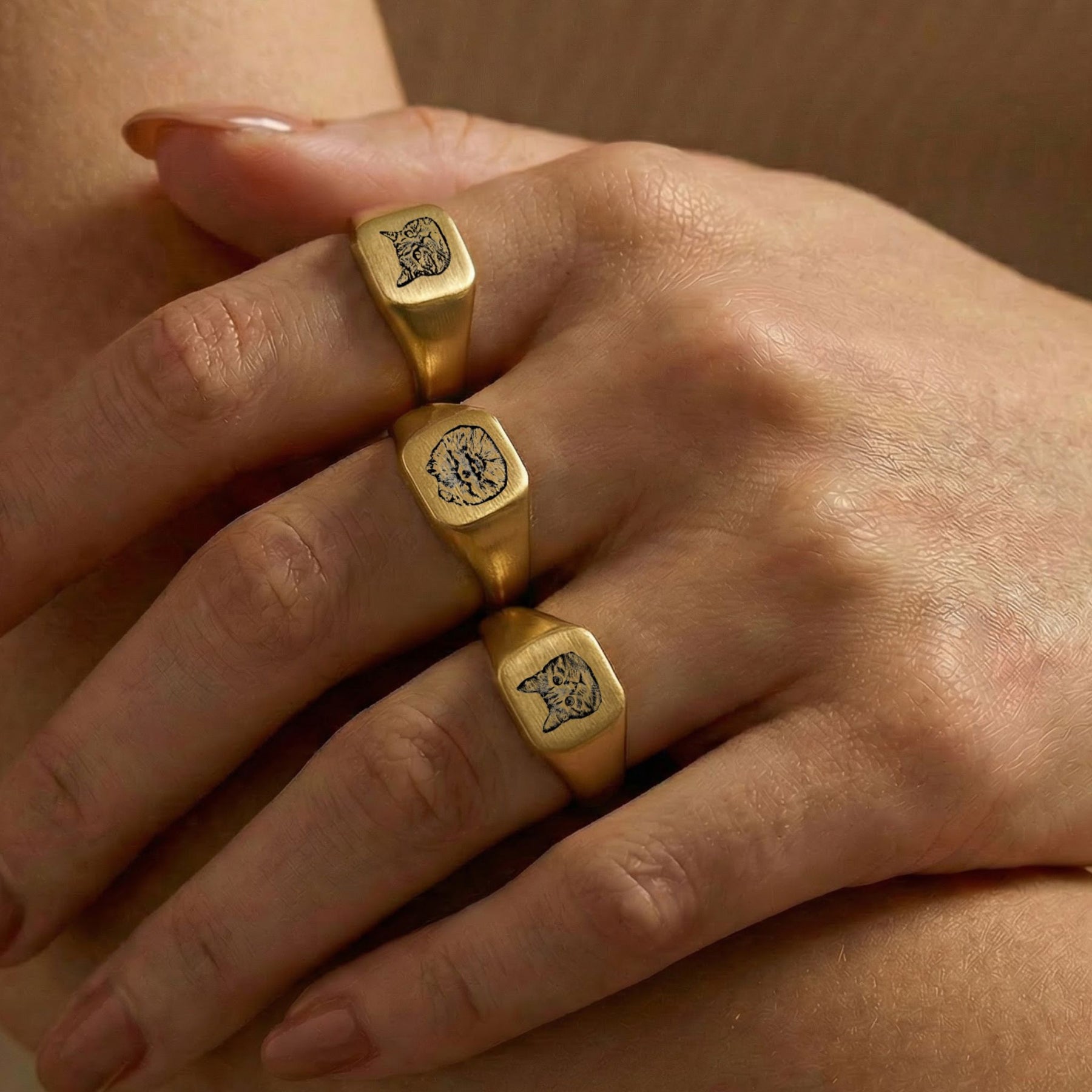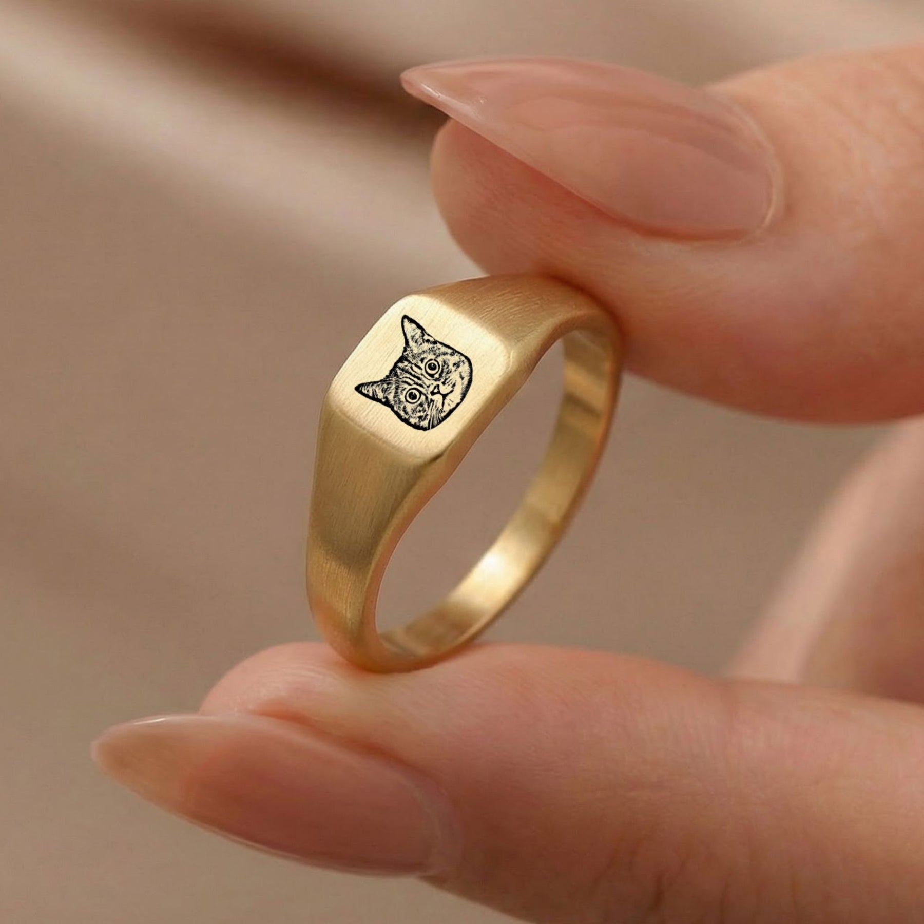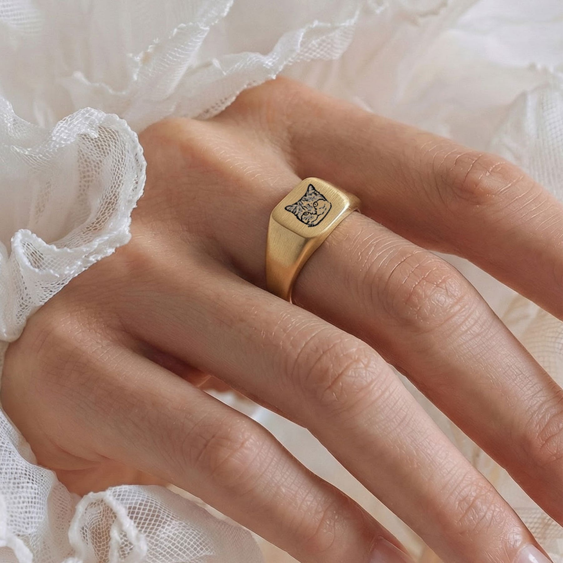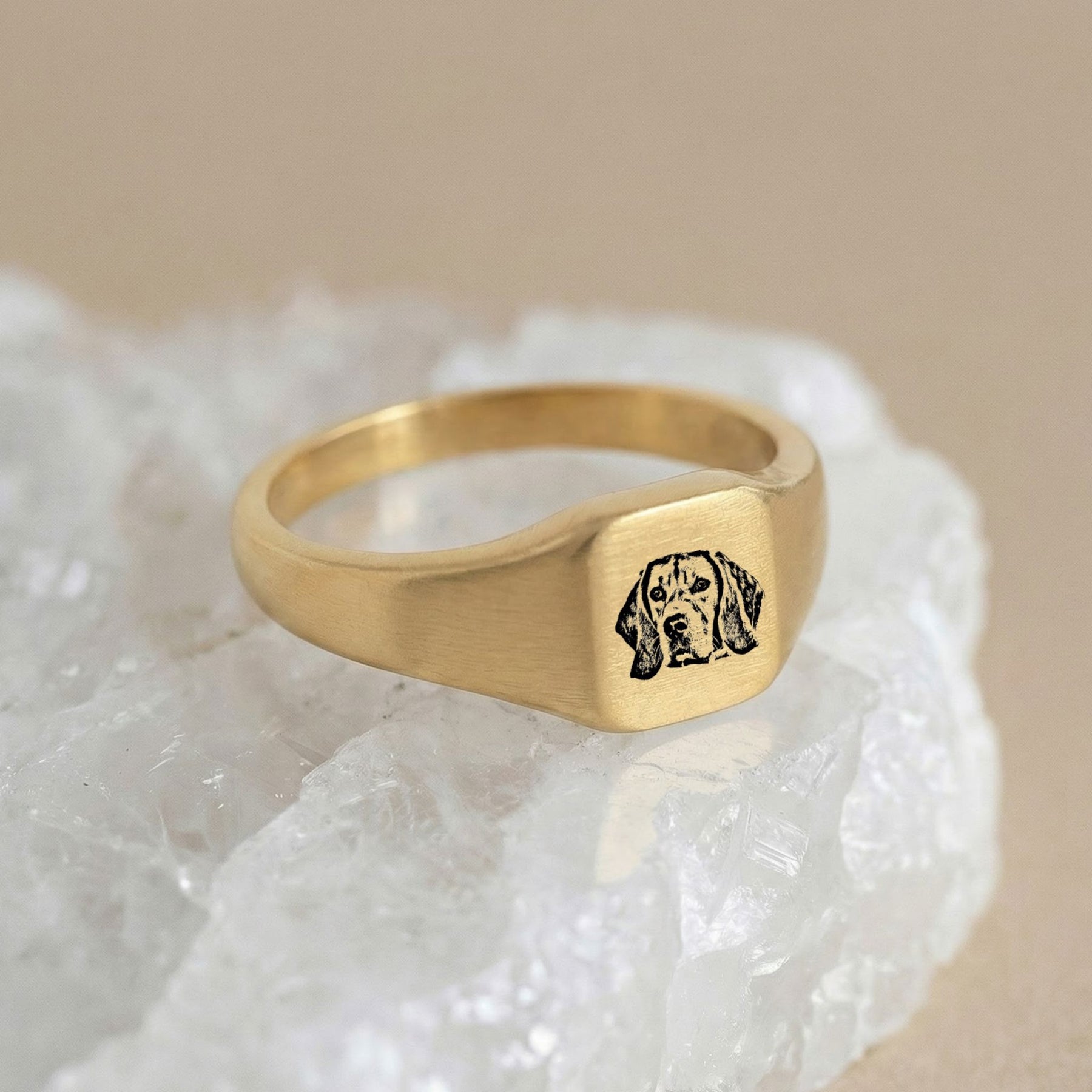 Custom Pet Square Signet Engraved Ring - Pet Face