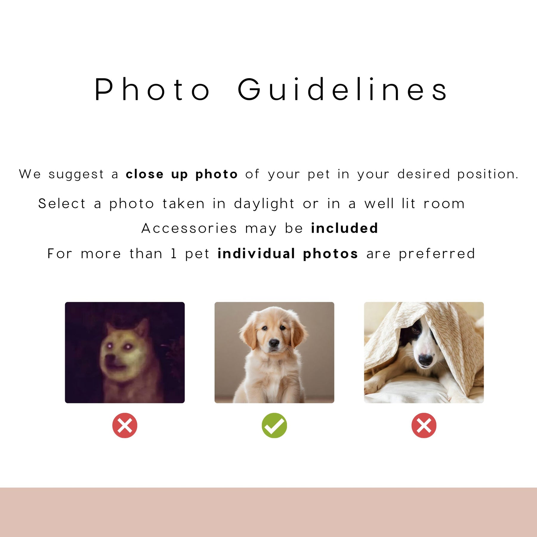 Please review our photo guidelines before submitting your photo. Remember, these are guidelines but we can work with almost any photo, just the better the photo, the better the finished product.