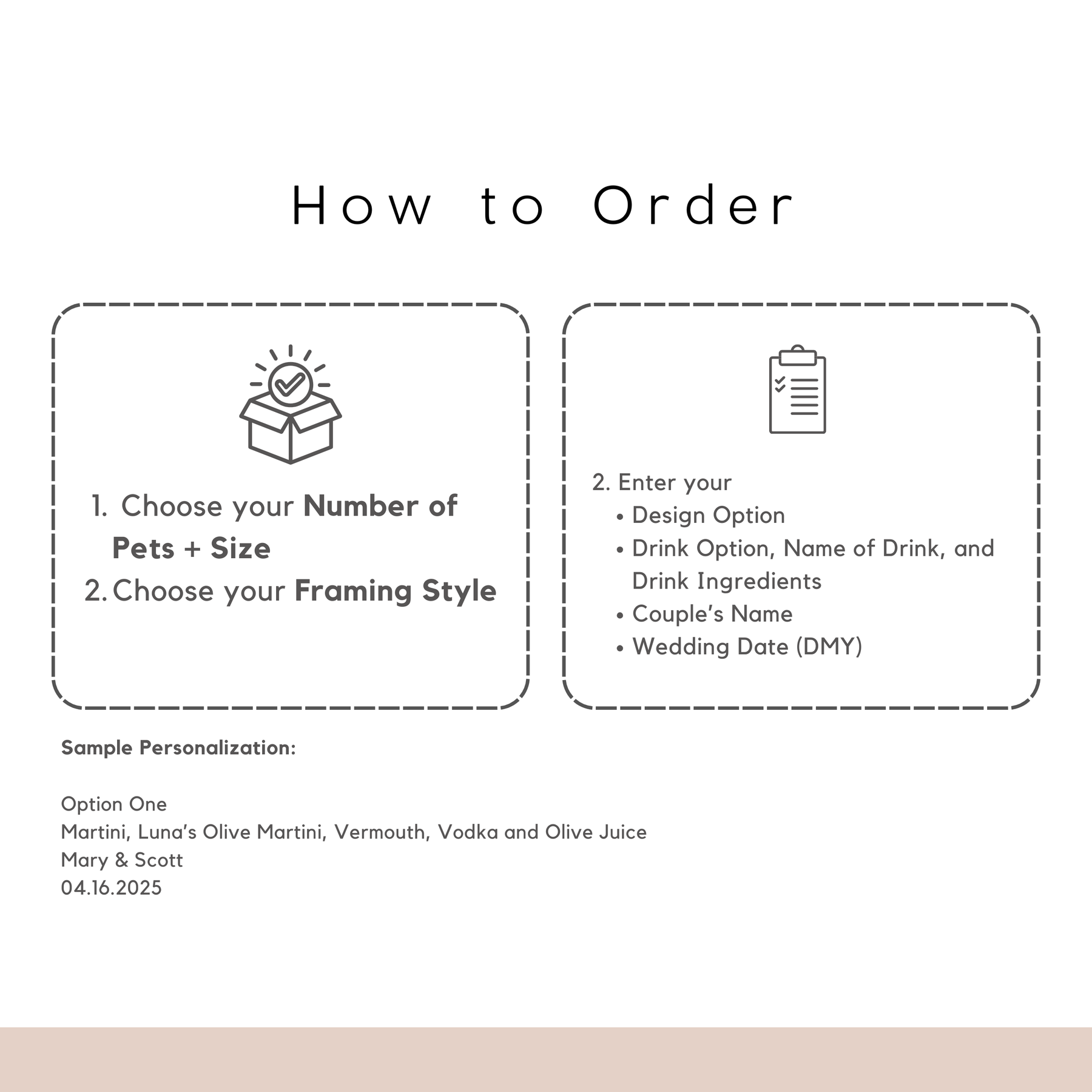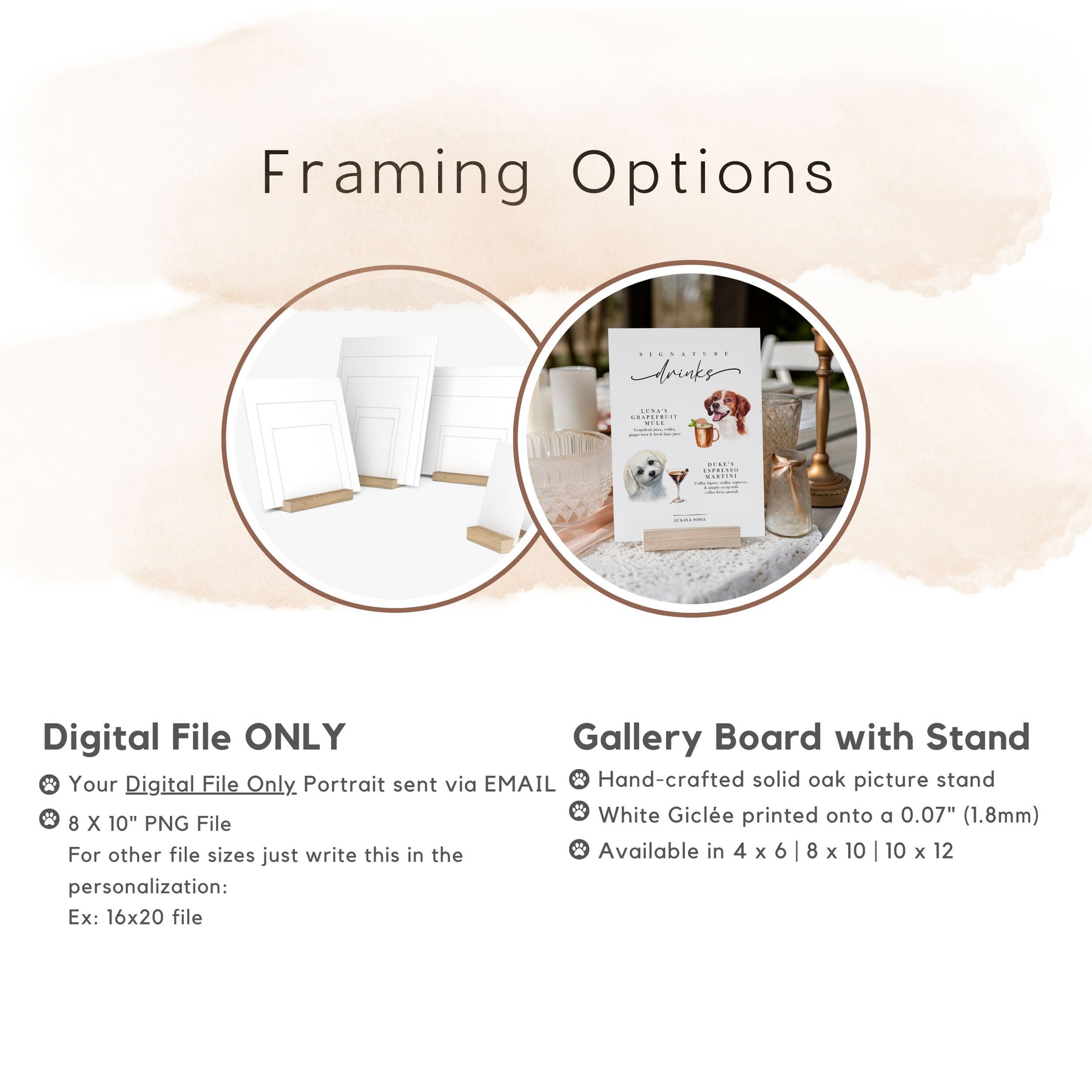 Celebrate the bond between you and your pet with this one of a kind, modern pet sign that matches the aesthetic of any wedding venue. This Custom Pet Wedding Welcome Sign is the perfect way to showcase your furry family member on your special day. Whether it's your dog, cat, or any other cherished animal, we’ll create a beautifully illustrated, personalized sign that makes your wedding truly yours. Can be purchased for your home, ideal gift for dog lovers, pet sympathy or remembrance gift, and more!