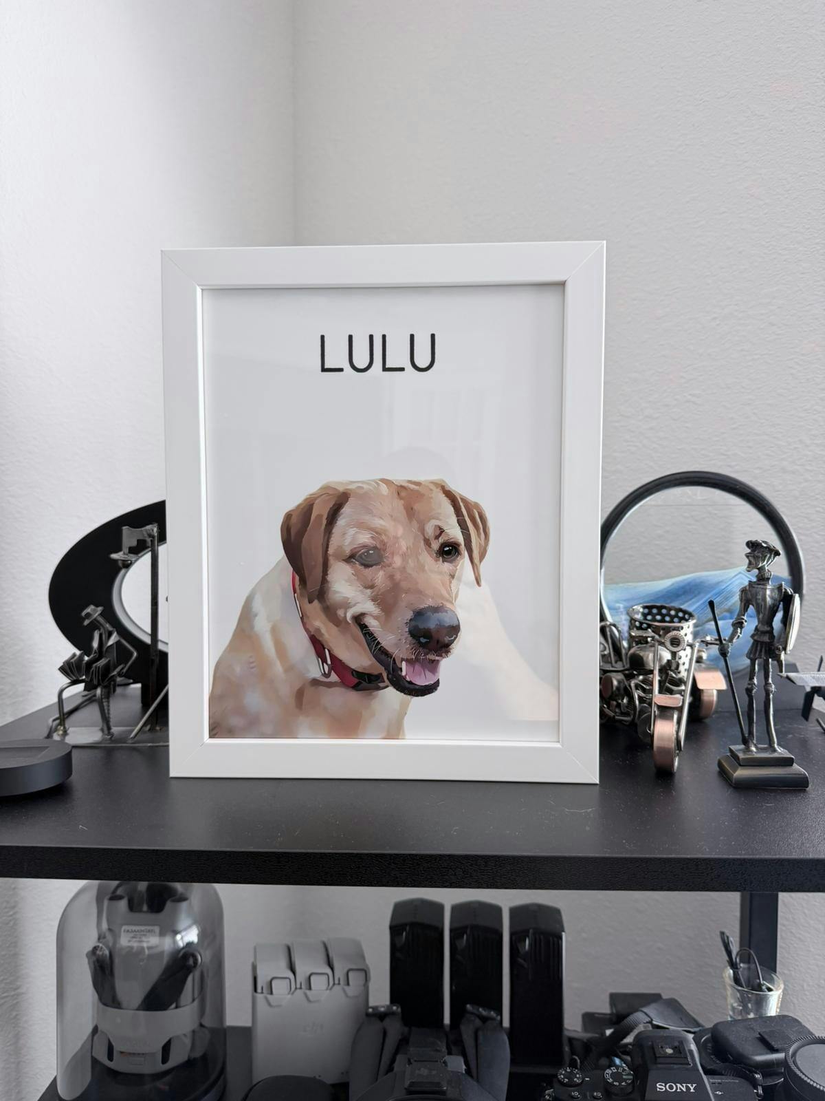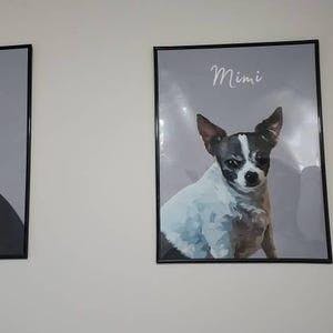 Celebrate the bond between you and your pet(s) with this one-of-a-kind, modern pet portrait that matches the aesthetic of any room. This pet portrait featuring your best friend will become a statement piece of your room and most definitely a conversation starter while matching your décor perfectly. This tastefully designed pet portrait that includes your PET NAME can be purchased for your home, or an ideal gift for dog or cat lovers, pet memorial gifts or gifts for dog owners and more! Comes in a variety of sizes and different styles to fit any taste: (digital copy, poster, white frame, or black frame). Your pet is created on thick museum-quality, matte posters which provide your pet portrait a more polished look.