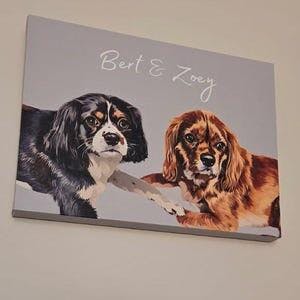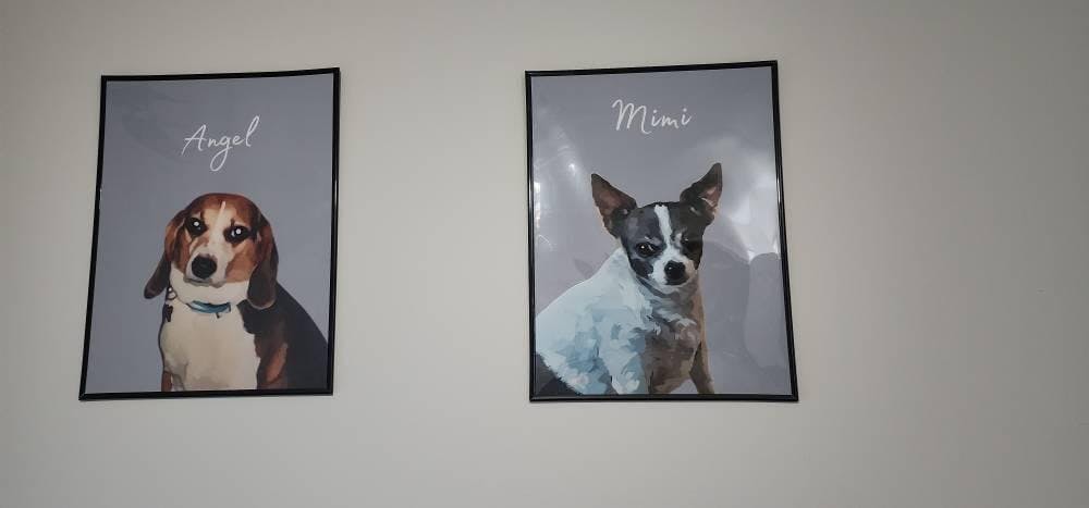 We ordered two 12 X 16 pictures of our adult kids' dogs and will send for their Christmas present. This is the second time we have ordered from Mod Paws, and we will definitely order more. Lots of kids and grandkids with pups. They are just beautiful!