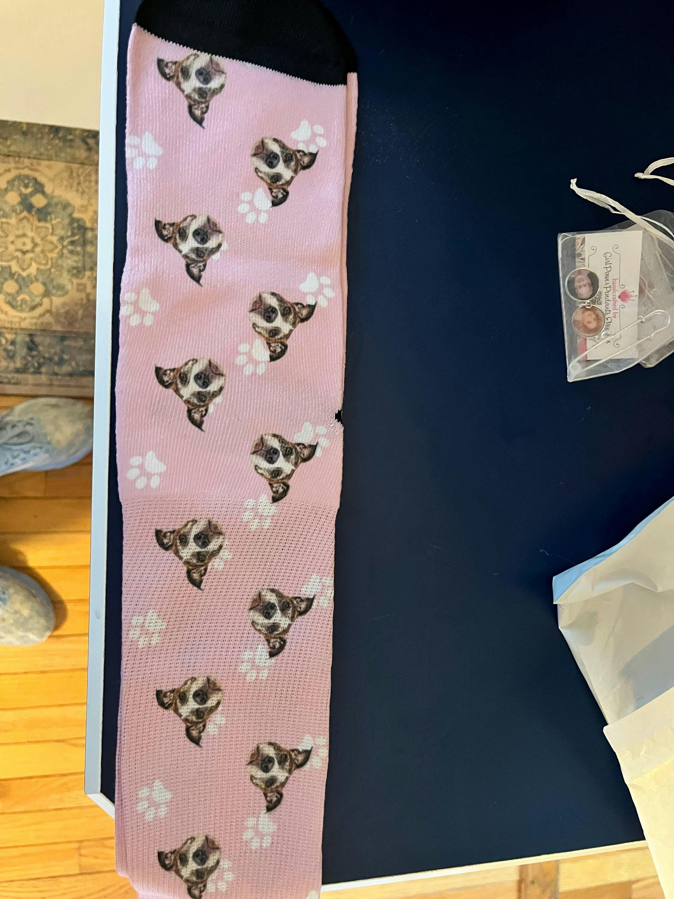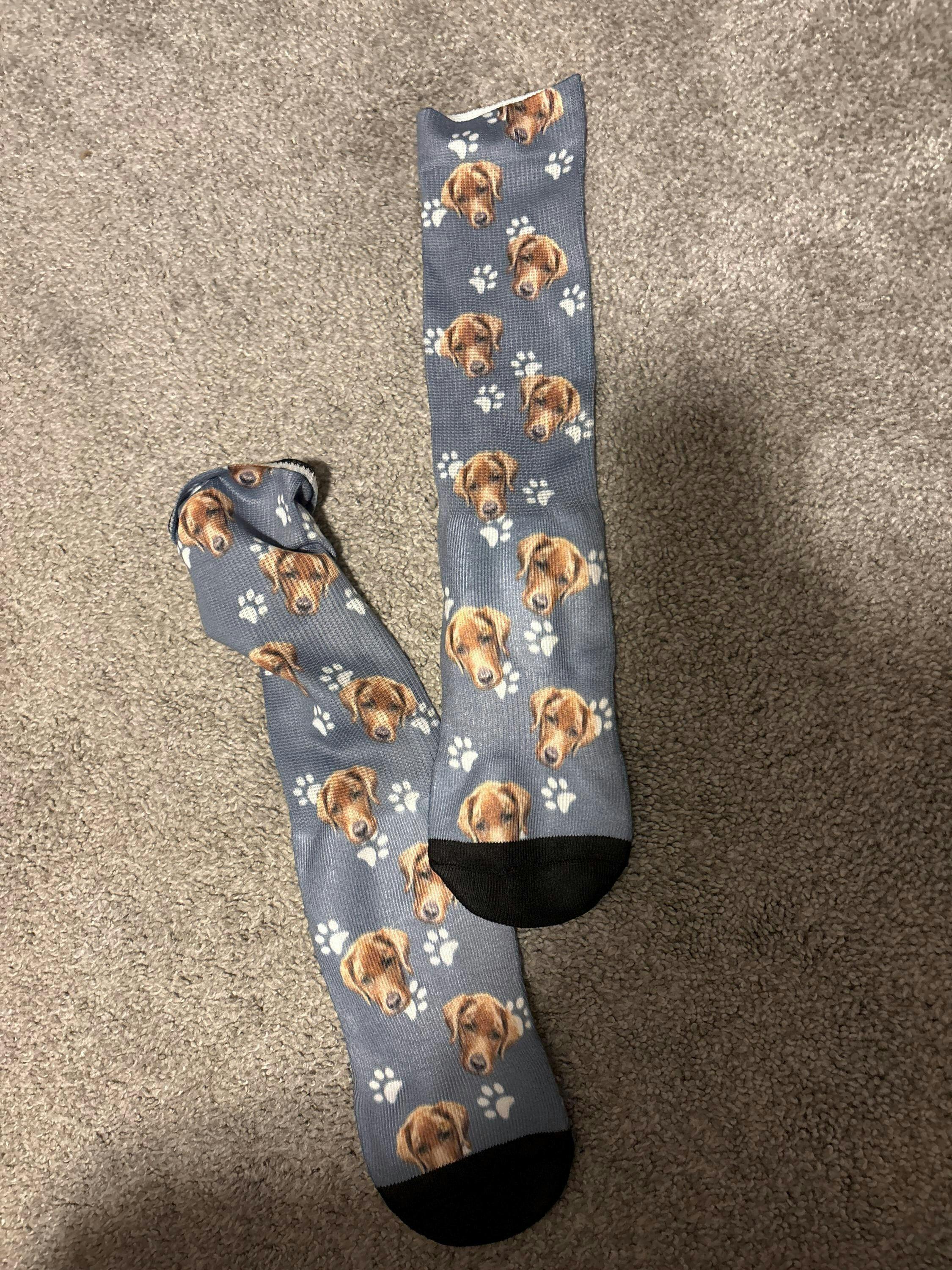 After production, your customized pet product will arrive in 5-7 business days!Personalized Dog Socks Description