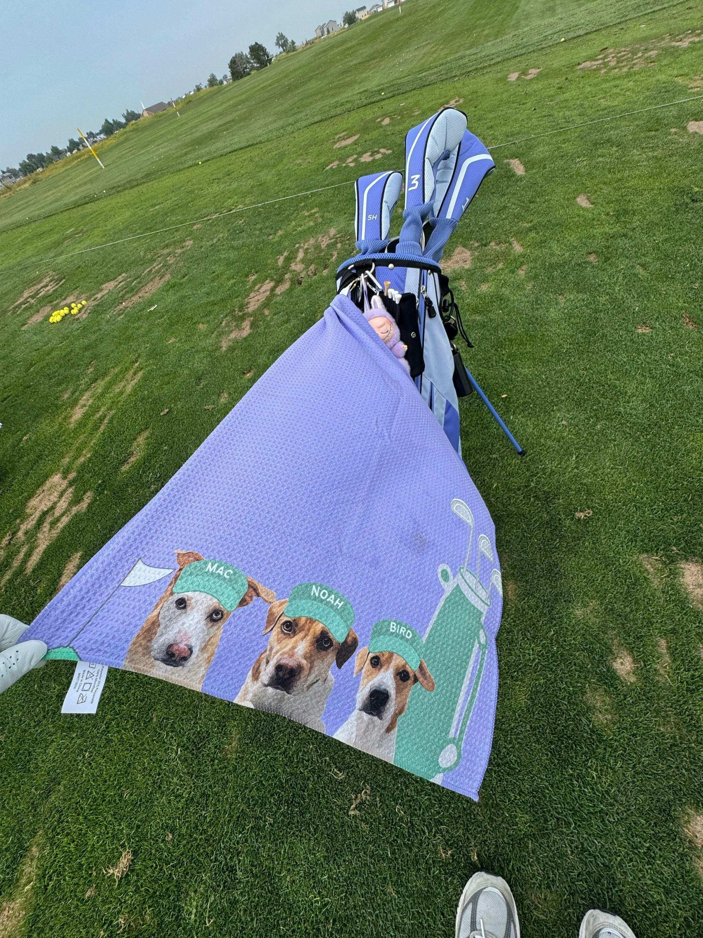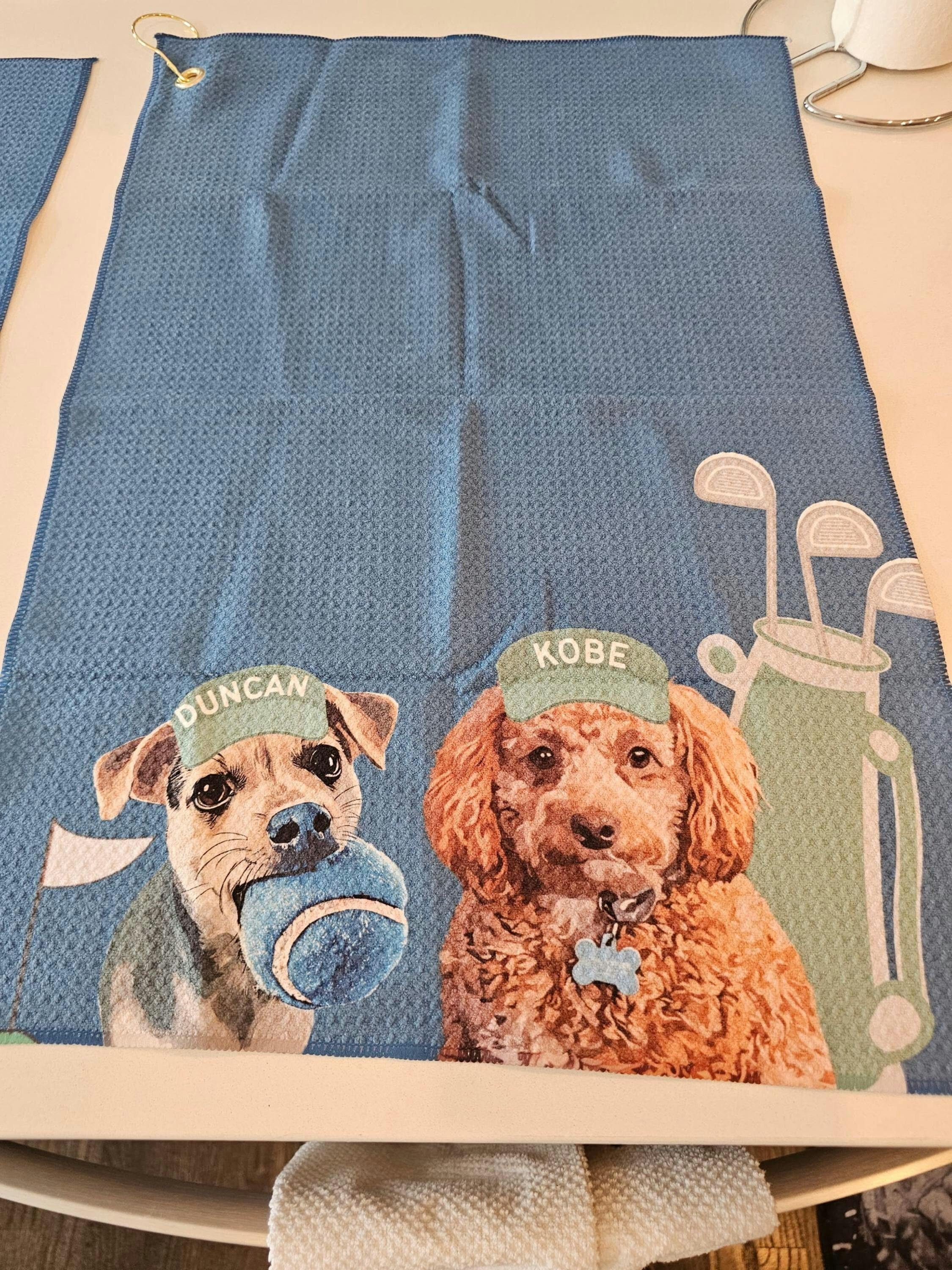 Add a touch of personality to your golf towels featuring your best friend! This golf towel is not only beautiful but also made from a durable polyester blend, these towels are perfect for cleaning and drying your equipment, ensuring you stay in top form on the course.