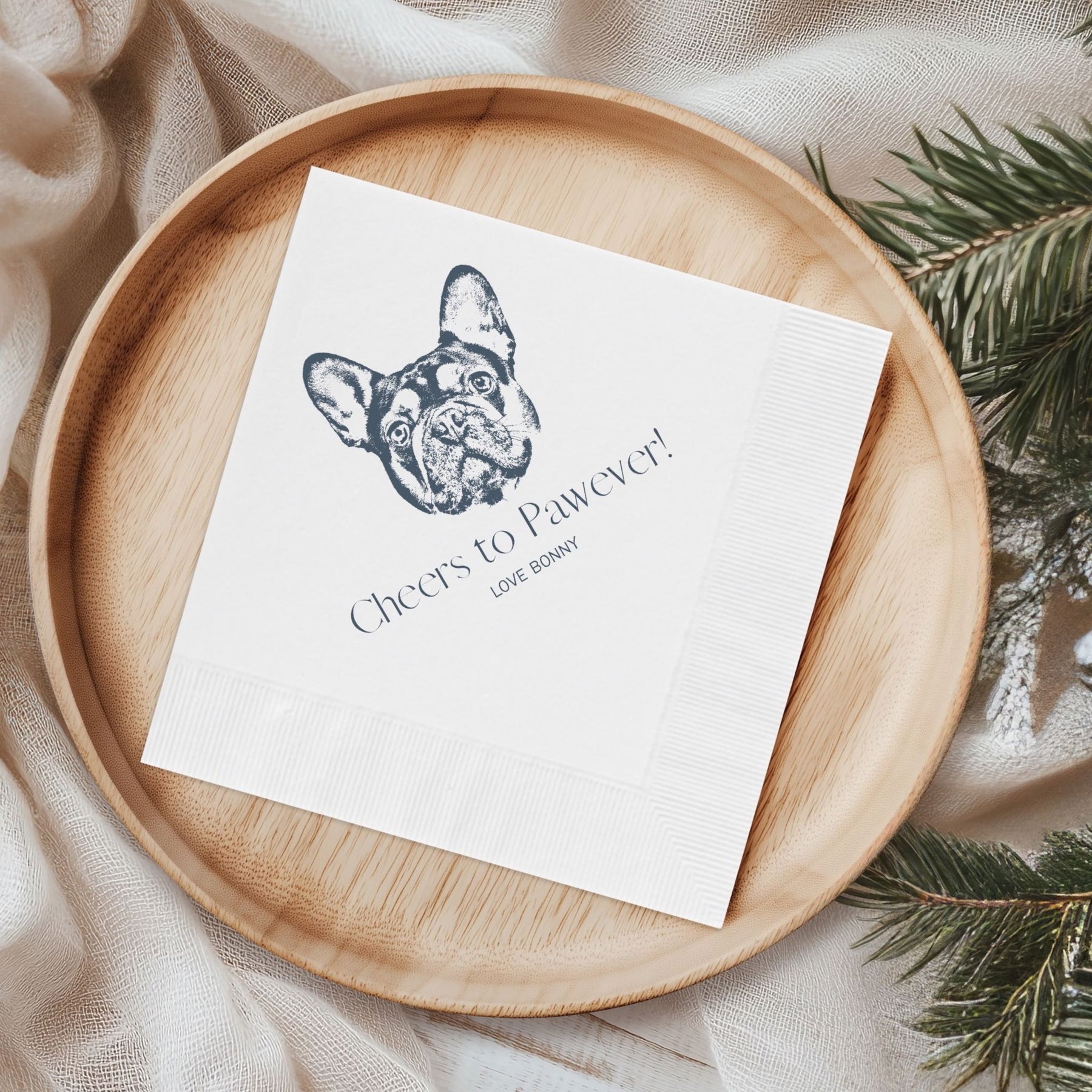 Custom Pet Wedding Cocktail Napkins - Pet Photo + Name